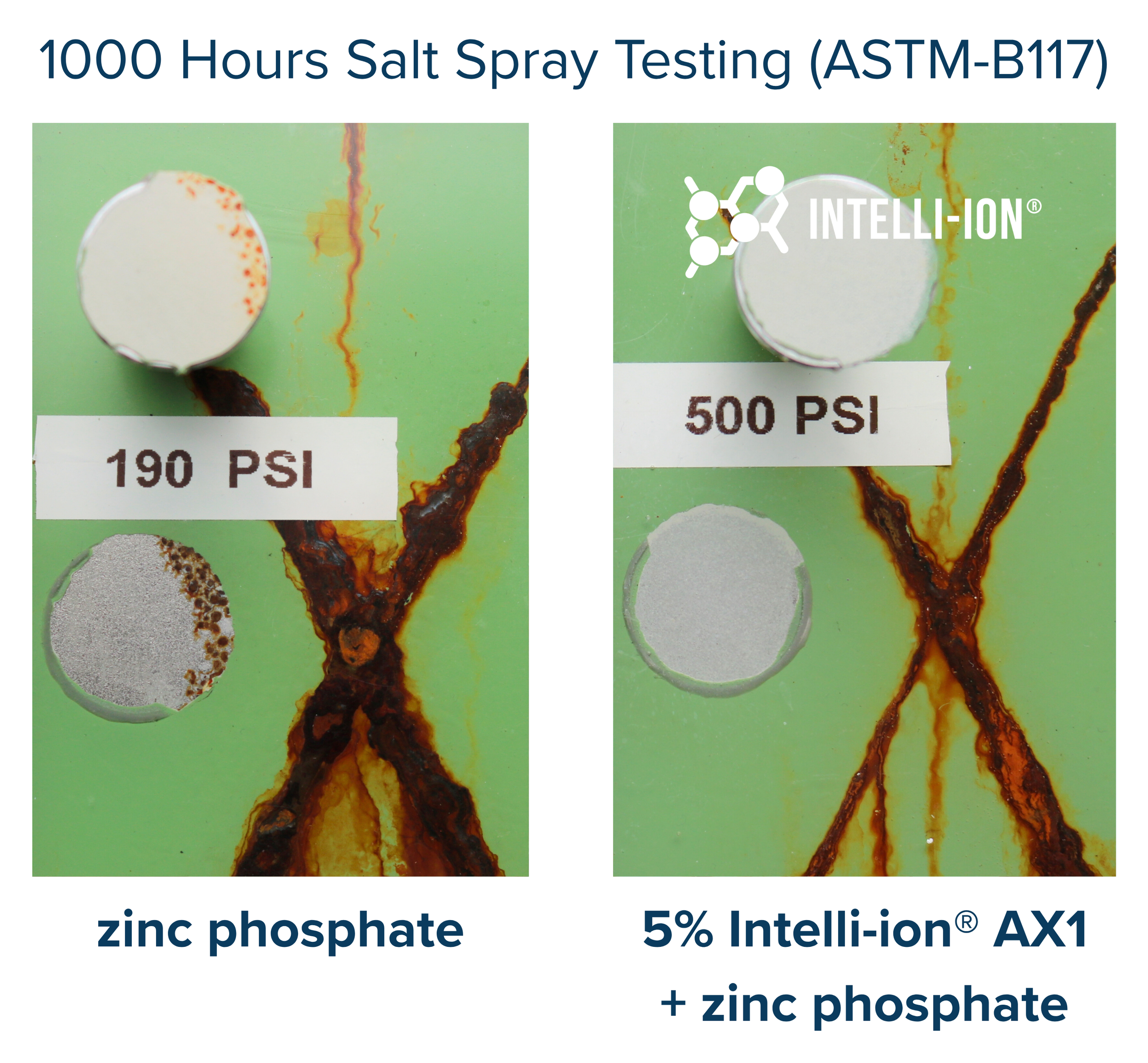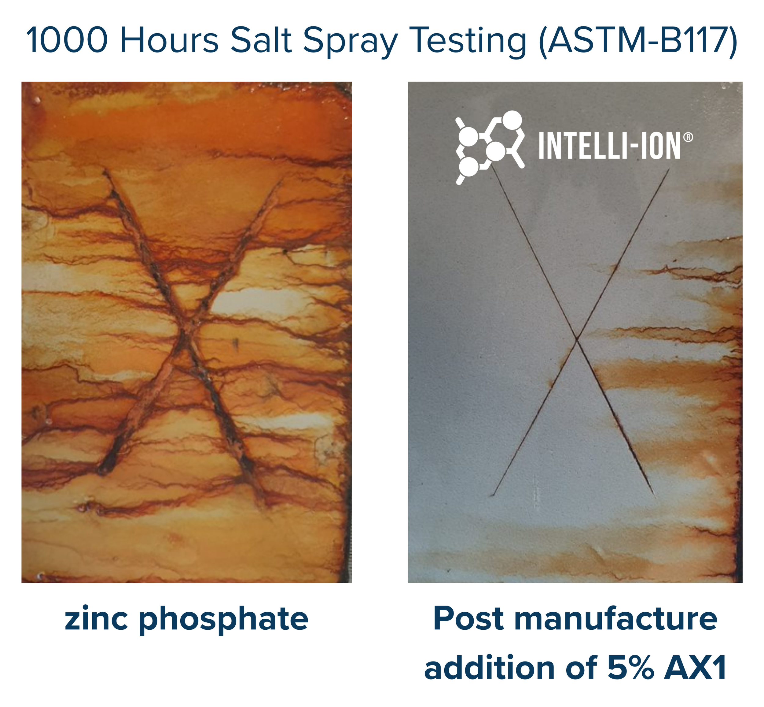 Mild steel substrate with Aluminium rich epoxy primer containing zinc phosphate + topcoat